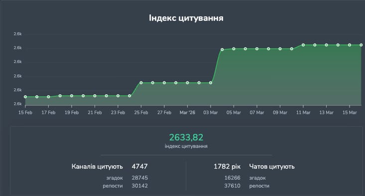 Останній показник суттєво просідає, як і у більшості великих каналів через кризу утримання аудиторії в українському телеграмі.